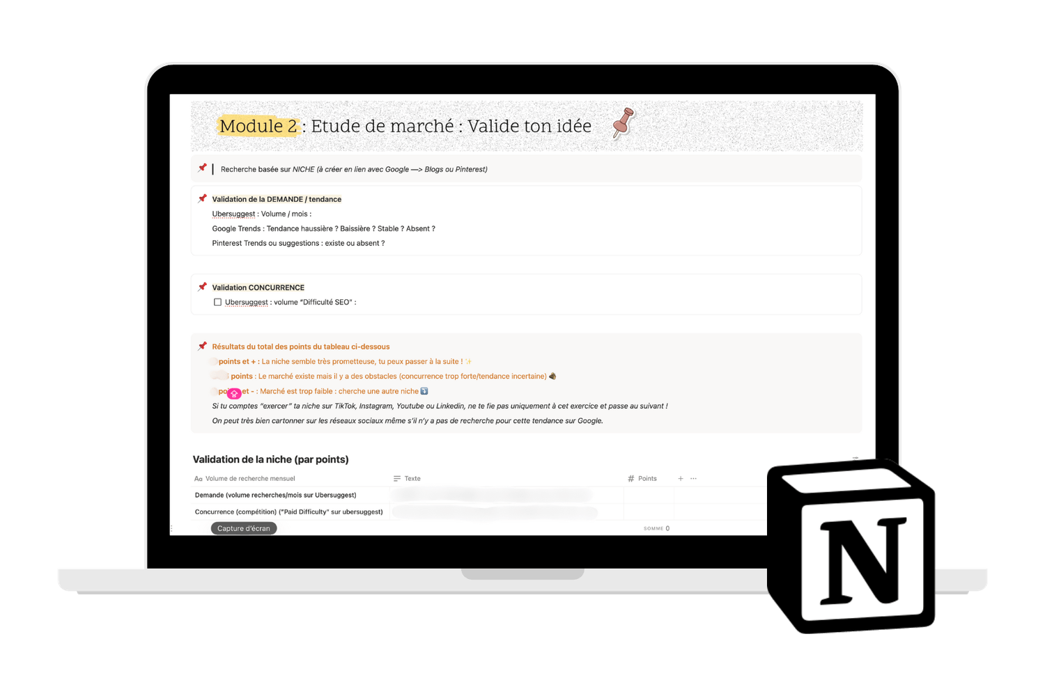Tu recevras ta feuille de route sur Notion, avec toute la structure de base de ton business déjà prête.