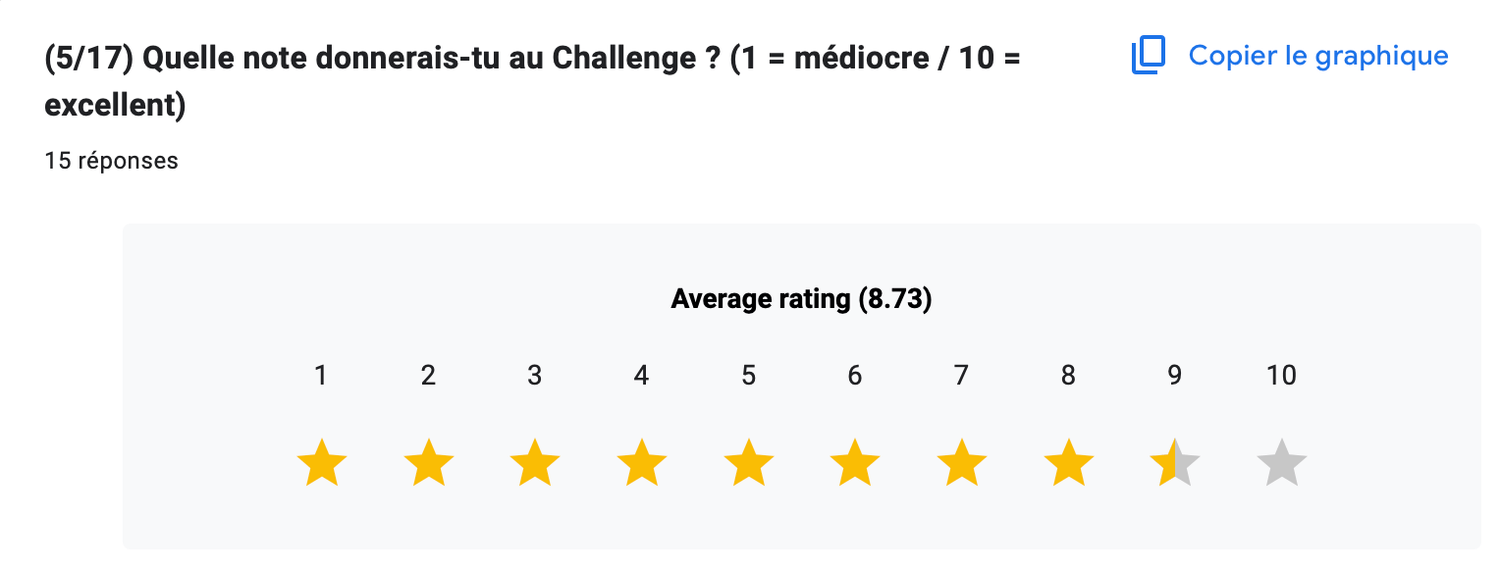 Les élèves attribuent au challenge une moyenne de 8,7 / 10